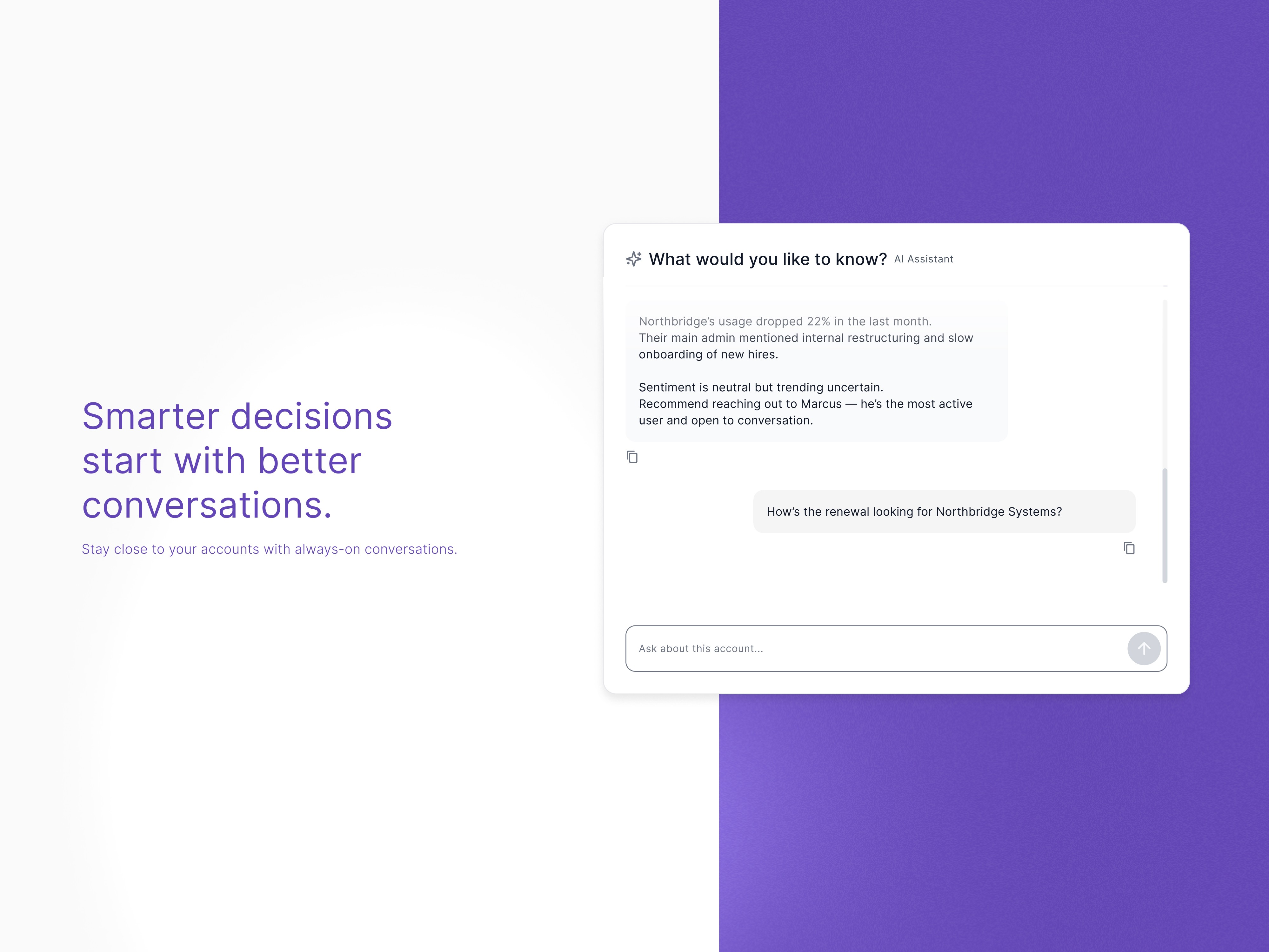 The assistant acts like a copilot layered over the core SaaS experience. Users can ask for insights (“Show partner merchants at risk this week”), trigger automations or request explanations of anomalous spikes.
