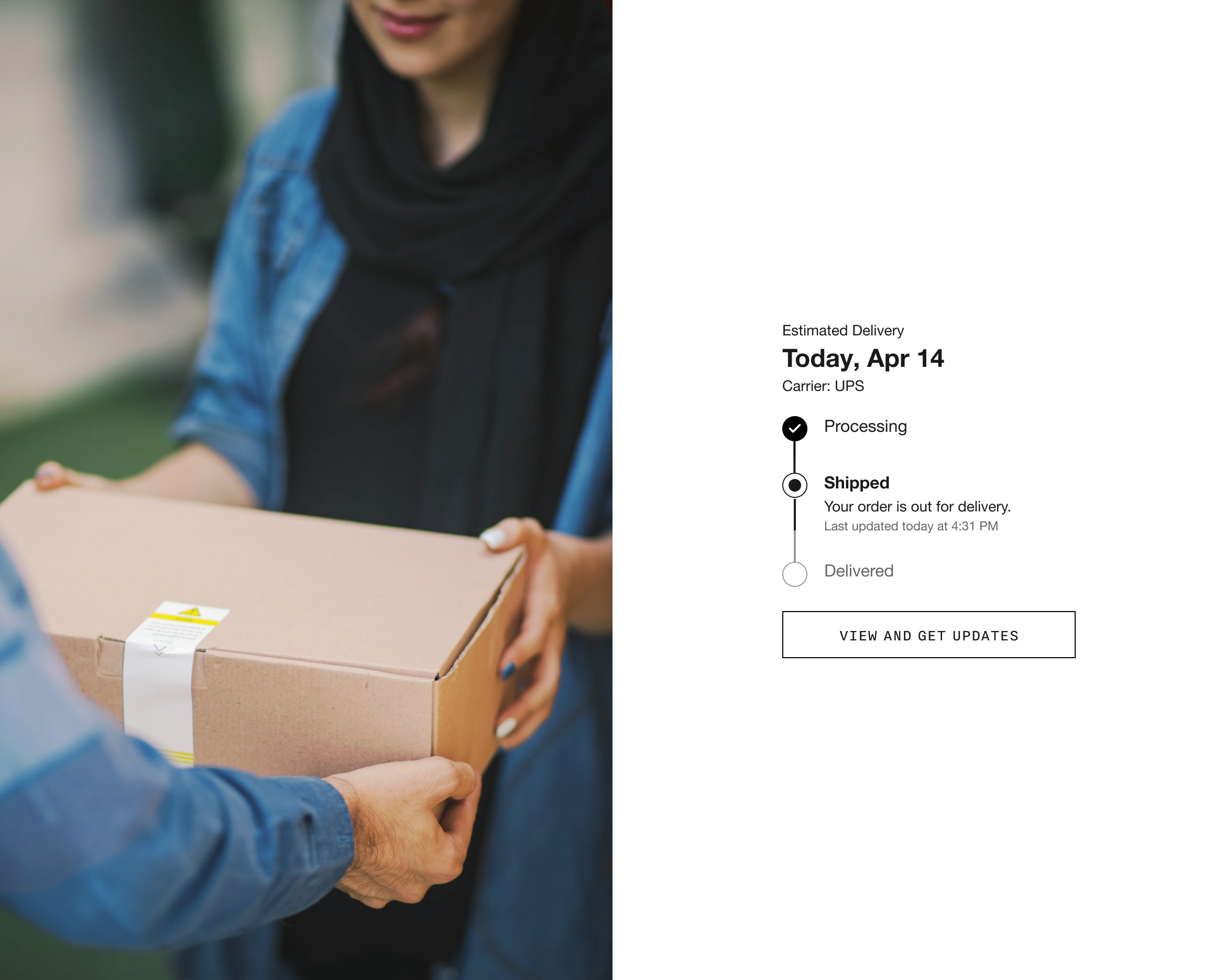 We designed the tracking experience as a chronological timeline that shows the order’s progression. Example scenario: