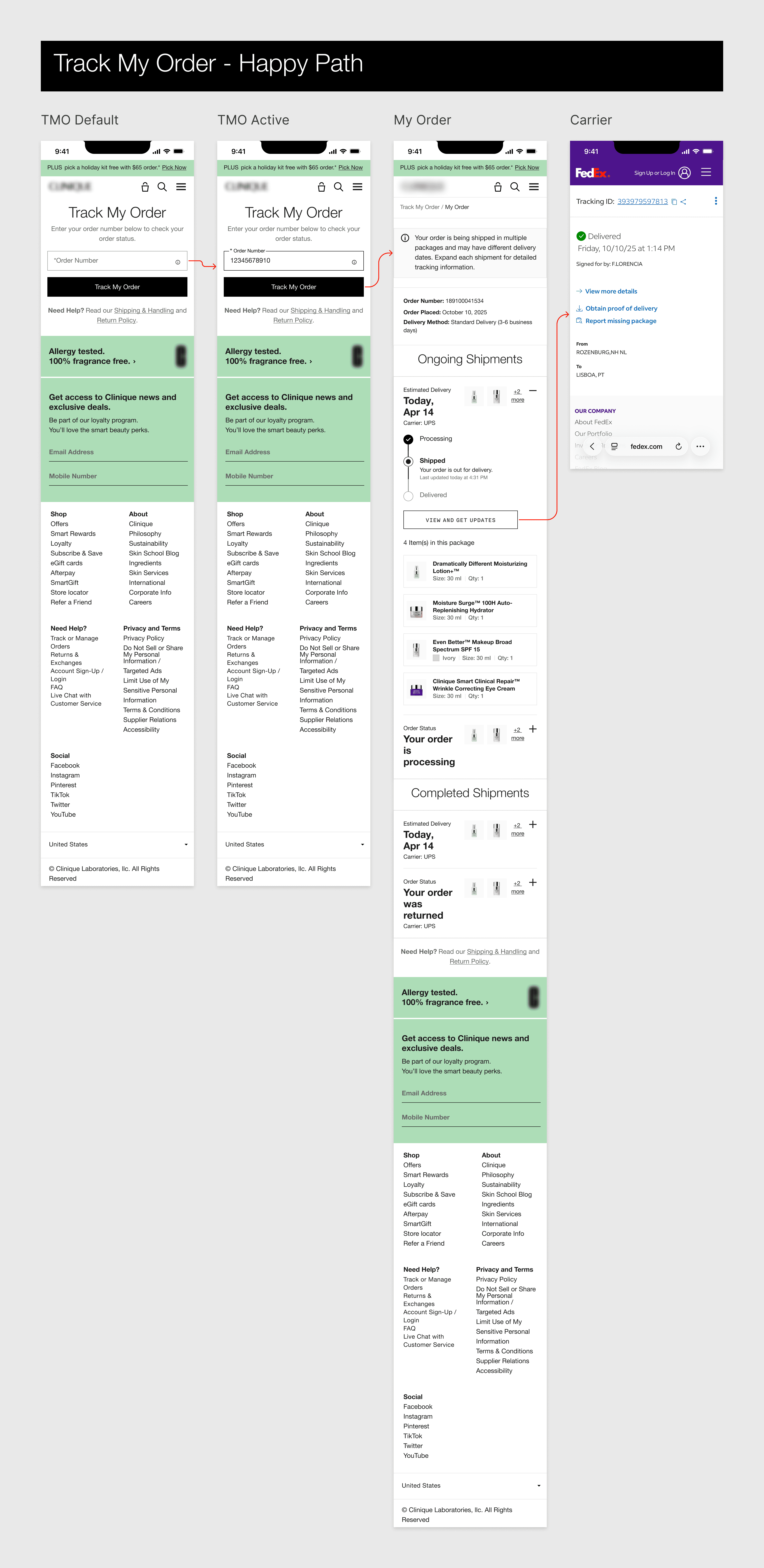 Clinique is a global skincare and cosmetics brand operating large-scale e-commerce across multiple regions. One of the most frequent customer interactions happens after the purchase, when users want to know where their order is. The existing tracking experience was fragmented and created unnecessary friction for customers.