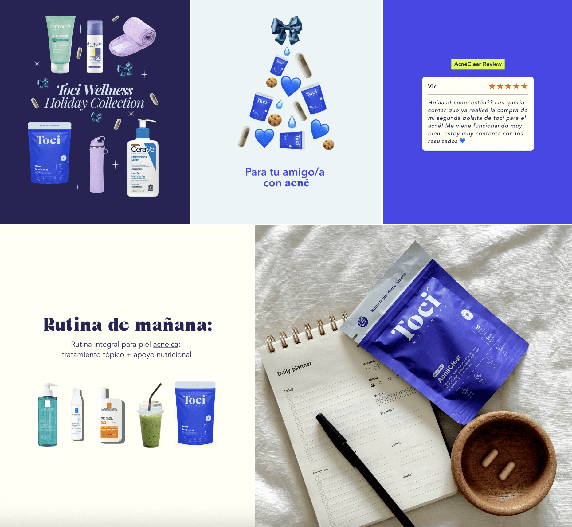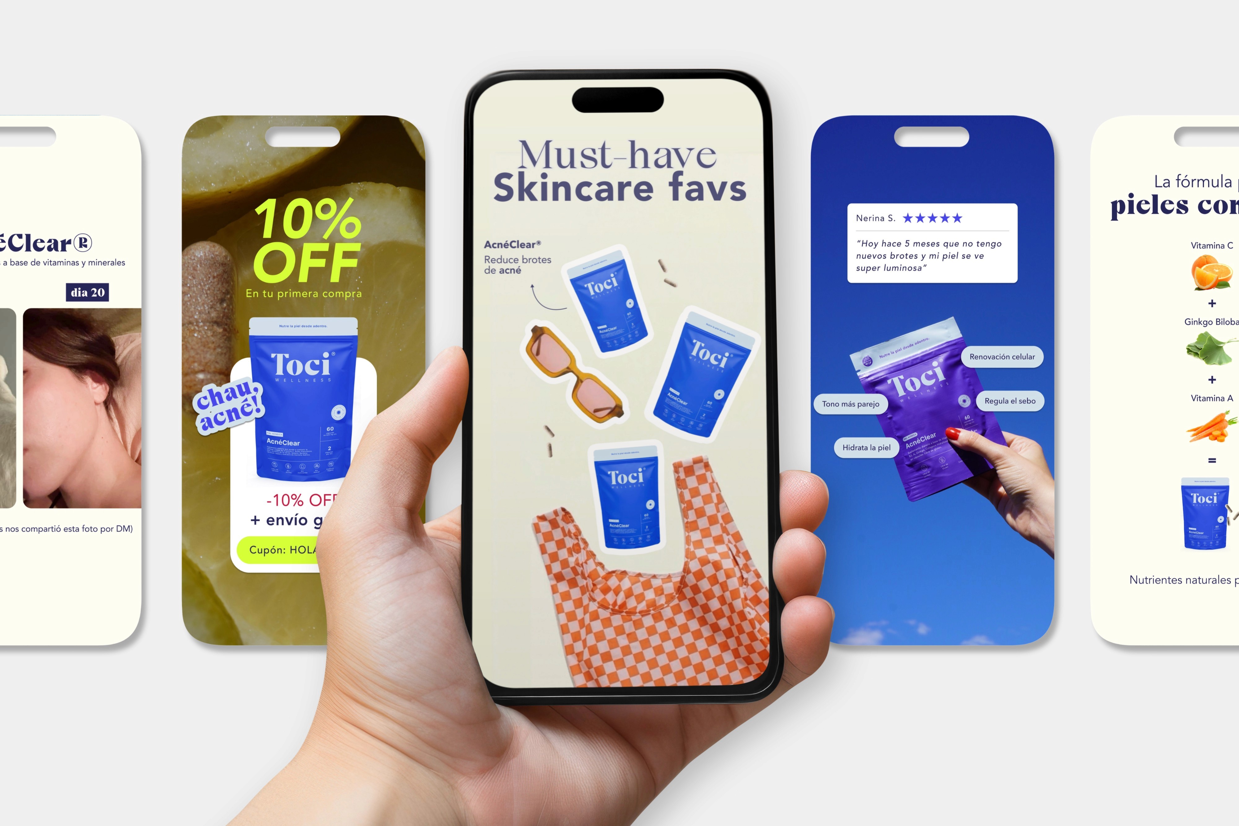 Toci Wellness is a direct-to-consumer skincare and wellness brand focused on treating skin conditions from the inside out. I led the creation of social media content and paid ad visuals for Instagram and Meta, combining education, brand storytelling, and performance-driven design.